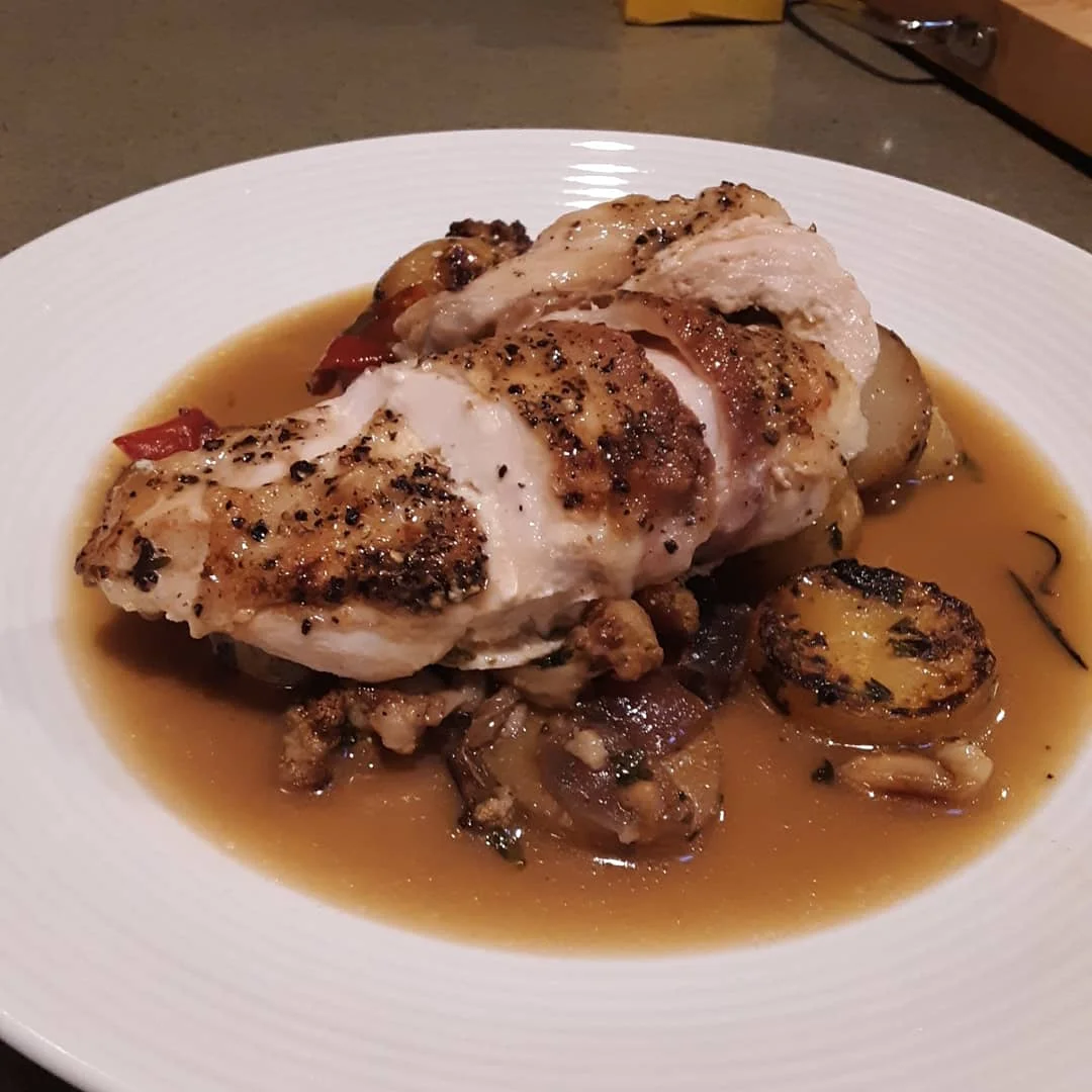 Lemon goat cheese stuffed chicken breast.